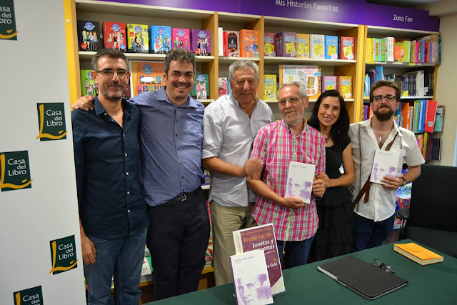 Para esta ocasión, y ya que Antonio no podía asistir a la presentación debido a su delicada salud, pedí a los poetas Francisco Caro, Carmina Casala y Sesi García, que me acompañaran leyendo poemas de Sonetos y otros poemas. y