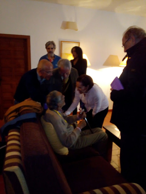 Pero la grata sorpresa fue que el protagonista del acto de presentación de Sonetos y otros poemas, es decir Antonio Gala, apareció de pronto en la sala de reuniones donde habíamos programado el acto, según el director, para estar más cómodos y mas calientes, ya que en el salón grande (antigua capilla del Convento del Corpus Cristi donde se ubica la Fundación), además de tener mucha reverberación, no buena para leer poemas, al tener las puertas abiertas para el público resultaba muy fría.